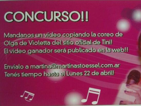 La ganadora de nuestro concurso fue esta chica llamada mili oyola ganó por la respuesta que es "no porque se moja" ganó un set de carpetas de violetta felicidades.